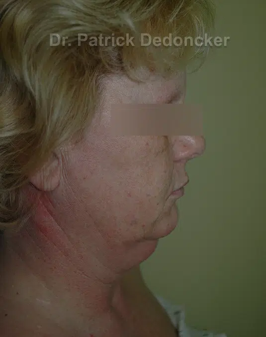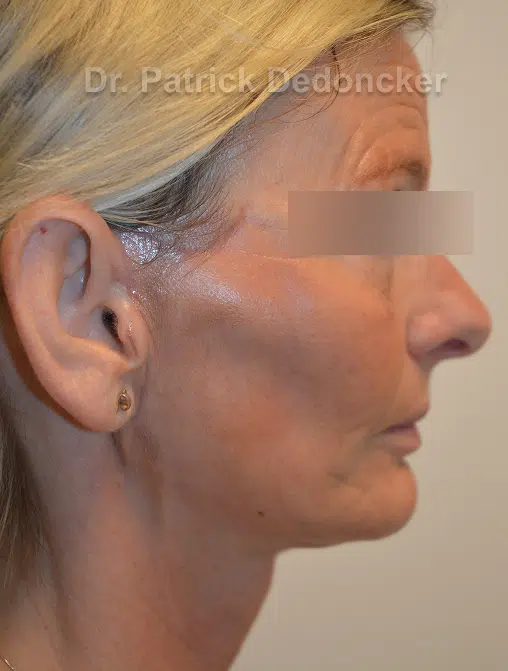 First, liposculpture is performed on the neck and double chin. This liposculpture ensures that all the subcutaneous fat is removed and that the remaining skin can be tightened even more. Not only the skin, but also the underlying neck muscles are tightened, with lifting loops, against gravity.